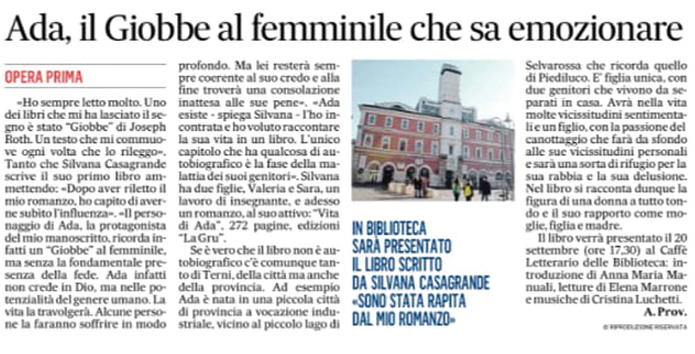 L'AUTRICE | Silvana Casagrande (Terni, 1964), ha svolto la professione di architetto prima di diventare insegnante di Arte presso l’Istituto Comprensivo “G. Marconi “ di Terni. È sposata e madre di due figlie di 20 e 23 anni. Vita di Ada è il suo primo romanzo.